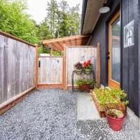 With the hard part done, trailers set up, utilities installed, privacy fences up, it was time for the finishing touches. For Kathi, the rest came easily. The name Camp Starlight is a nod to simpler times, something that resonates with her. Set on the far end of Halibut Point Road, Camp Starlight is the perfect spot to spend time stargazing. Kathi even lovingly named the trailers to honor her mother Eleanor and her childhood bestie Stella.